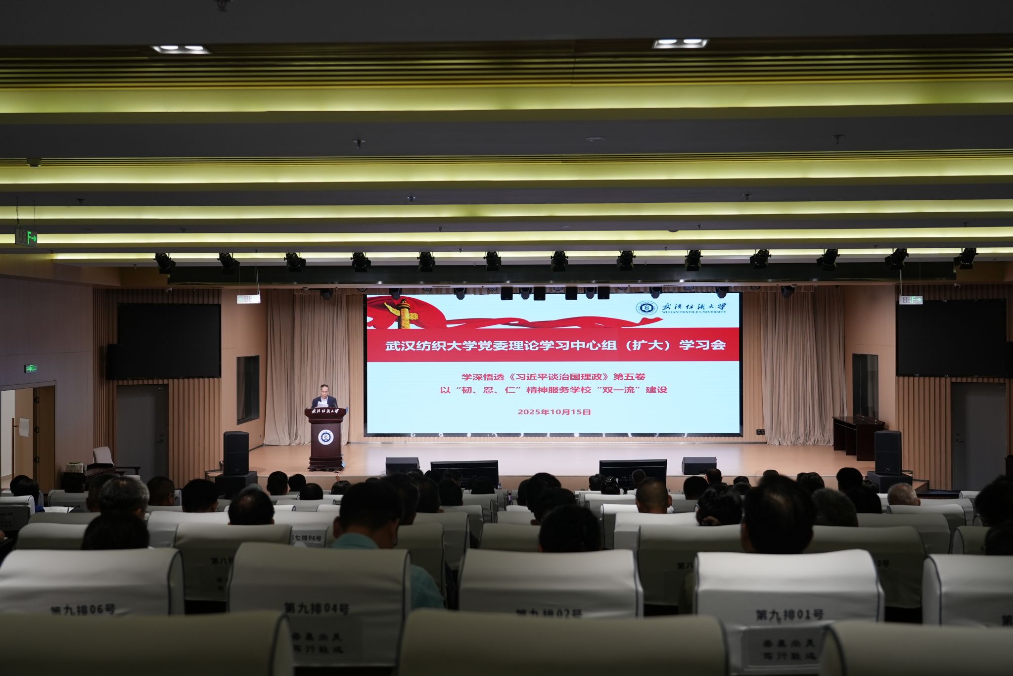 10月15日上午,武汉纺织大学党委理论学习中心组(扩大)学习会在阳光校区建全会堂稳健厅召开,专题学习《习近平谈治国理政》第五卷。全体校领导,两委委员,全体中层干部,教师代表参加学习会。校党委书记徐卫林主持会议并作“学深悟透《习近平谈治国理政》第五卷 以‘韧、忍、仁’精神服务学校‘双一流’建设”专题辅导报告。