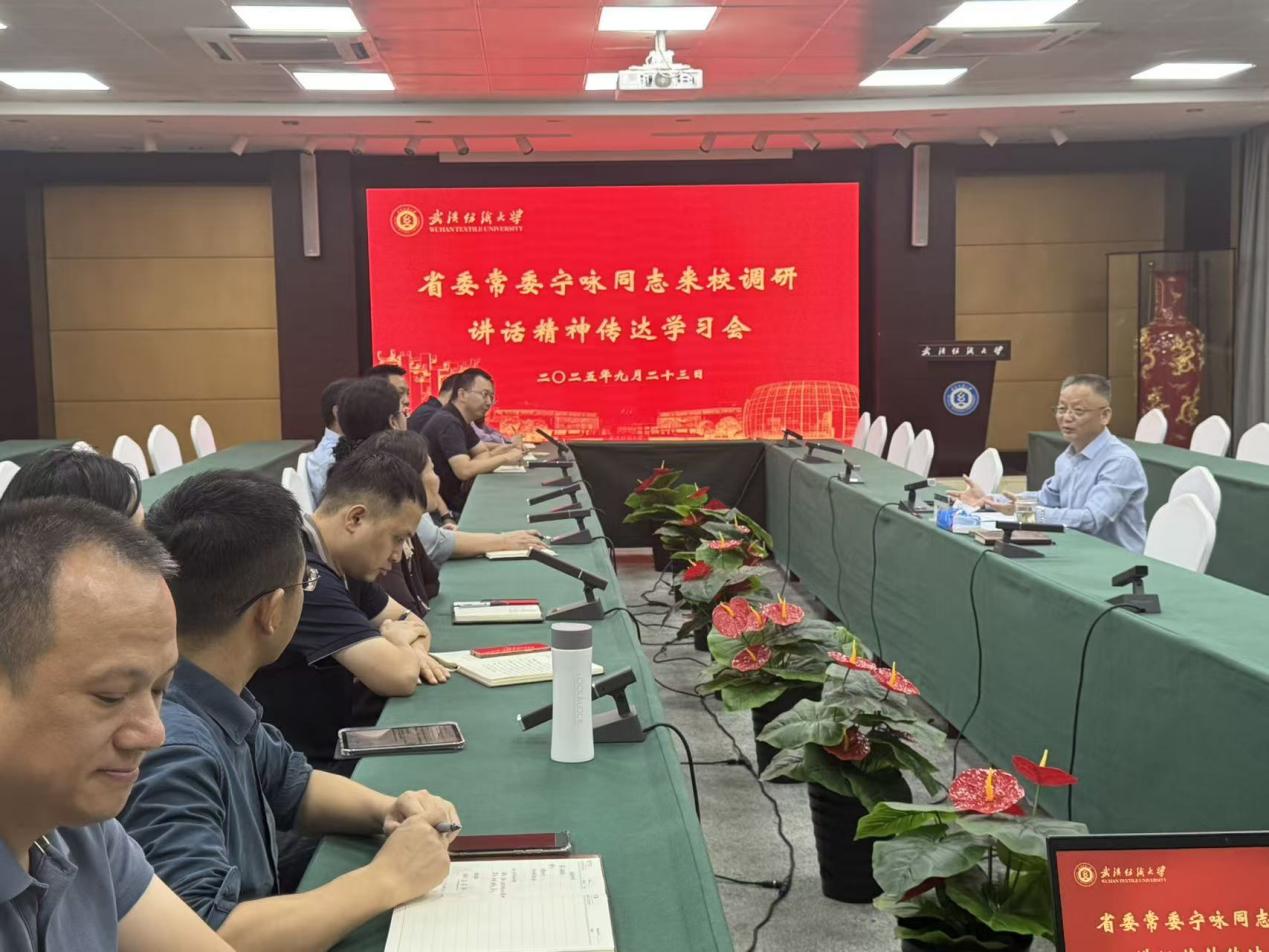 为深入学习贯彻省委常委、统战部部长宁咏同志来校调研指导讲话精神,9月23日下午,学校在阳光校区行政楼115会议室组织召开专题传达学习会。会议旨在统一思想、提高认识,研究部署贯彻落实举措,推动学校统战工作高质量发展,为服务湖北加快建成中部地区崛起重要战略支点汇聚磅礴力量。会议由校党委副书记、副校长罗锦银主持,统战部负责人,民主党派、统战团体主要负责人出席会议。
