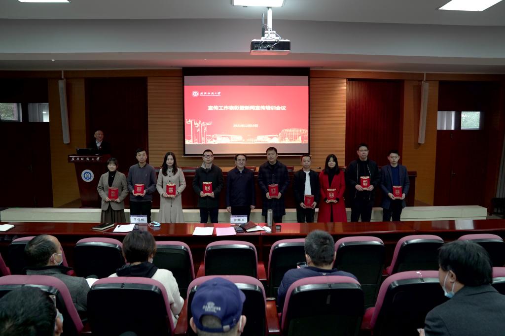 12月15日上午,学校在阳光校区行政楼二楼学术报告厅召开2021年宣传工作表彰暨新闻宣传培训会,校党委书记田辉玉出席会议,为受表彰的集体和个人代表颁奖,对做好学校宣传思想工作提出要求。校党委副书记、副校长罗锦银主持会议。受表彰的先进集体和先进个人代表,机关职能部门、直属附属单位负责人,二级学院党委书记、副书记,各单位师生通讯员代表参加会议。